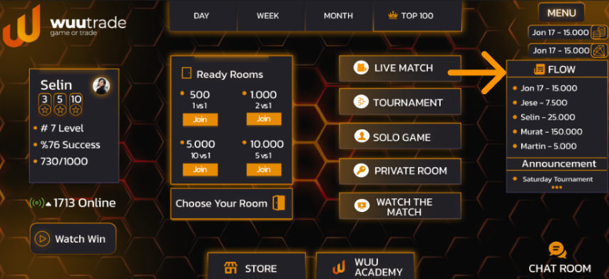 You earn WuuDrop rewards in Tournaments and Live Matches in WuuTrade. By purchasing a pass for 0.5$, 1$, you compete in increasing your balance with other Traders, on the same charts, on fair terms. Your winnings are funded from the WuuTrade treasury and these rewards give you between 70x-235x. If you play in a single day, even in the simplest rooms, your winnings can be very high. The important thing is to read the market well, trade well and increase your virtual balance by making the right moves at the right time.